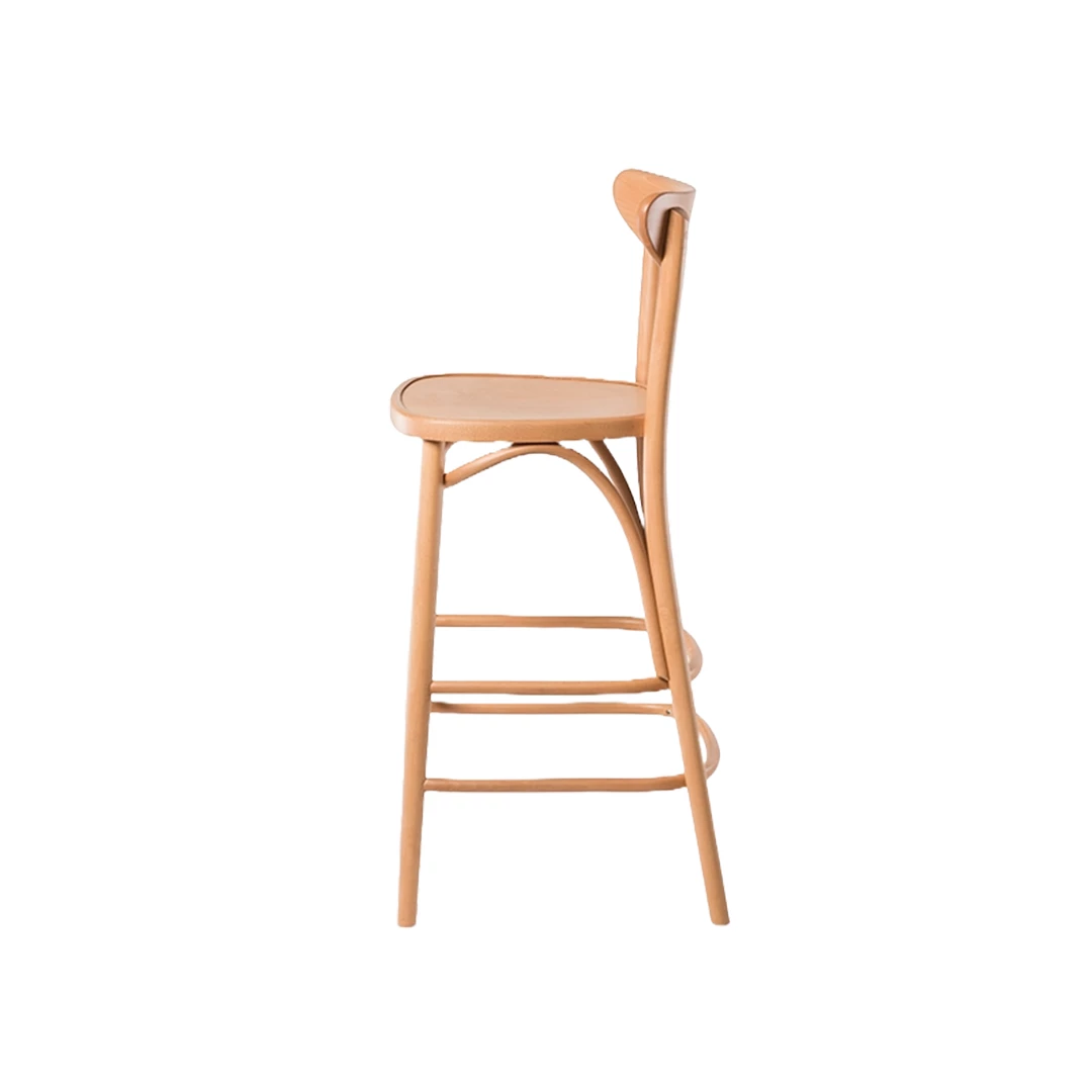 The Banana BK wooden barstool showcases timeless craftsmanship through traditional beech wood bending. Its solid beech frame and wooden footrest ensure durability and comfort, while the natural curves give it a refined, classic look. Available in multiple wood stain colors, ideal for bars, bistros, and horeca interiors.