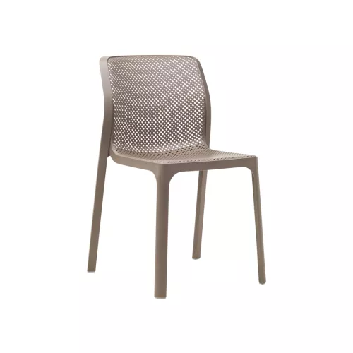 Bit is a modern monobloc outdoor chair made from uniformly colored fiberglass polypropylene with UV additives. Its matte finish, recyclable resin, and availability in multiple colors make it a stylish and sustainable choice for any HORECA terrace.