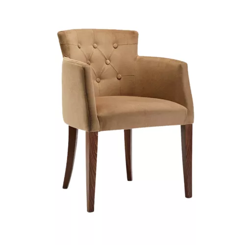 The Breda A armchair features a beech wood frame, lacquered with PU for high resistance and durability. The seat and back are upholstered with high-strength foam for long-lasting comfort. It can be customized in a wide range of professional fabrics or imitation leather, and in various wood colors. The chair comes with PVC or felt glides, ensuring smooth movement.