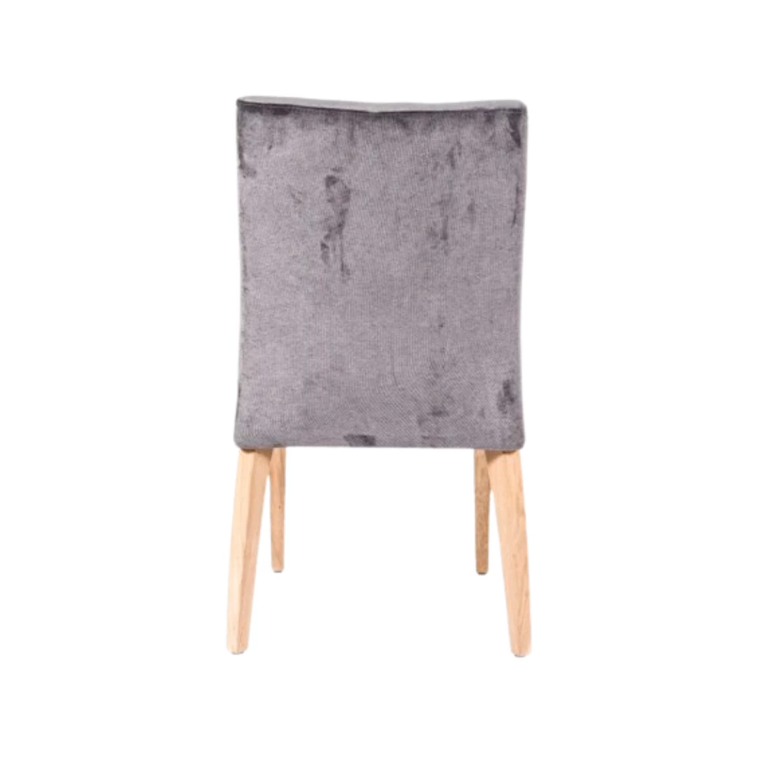 Chair with a solid beechwood frame, featuring an upholstered seat and backrest enhanced with decorative stitching. Available in a wide selection of fabric options upon request. This model can also be personalized with customer-supplied fabric, ensuring perfect coordination with any interior concept.