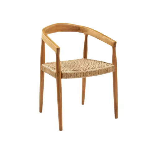 Armchair made of durable teak wood, featuring a seat woven with high-quality synthetic rattan. Suitable for outdoor use on terraces, patios, and garden areas, combining natural materials with weather-resistant performance. Dimensions: 55x51x78 cm.