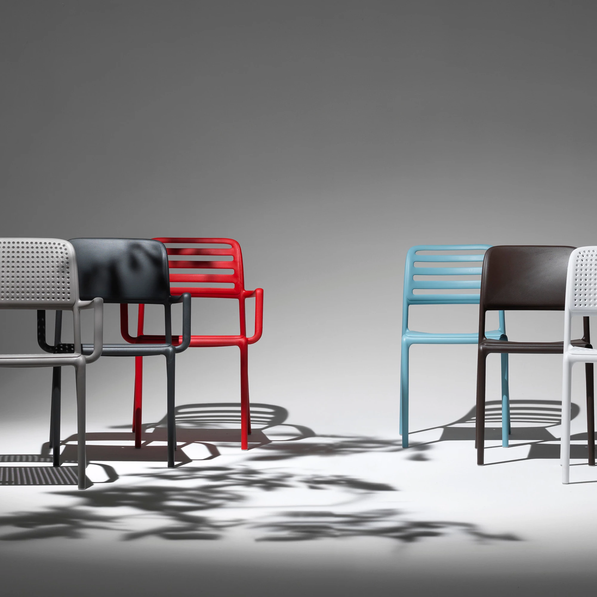 The Costa Bistrot Chair is designed specifically for commercial use, making it ideal for busy outdoor restaurants, cafés, bistros, and other hospitality environments. Made from fiber-glass reinforced polypropylene, it combines exceptional strength with lightweight ease of handling, ensuring it can withstand daily heavy use. Non-slip feet provide safety and stability, while the matt finish adds a sophisticated, professional look. Available in six contemporary colors — White, Antracite, Tortora, Agave, Celeste — the Costa Bistrot Chair complements any commercial outdoor setting. Its durable polypropylene frame resists wear, weather, and frequent movement, providing reliable performance for your establishment while offering comfort and style to your guests. Perfect for creating stylish, durable, and functional dining areas that meet the demands of high-traffic hospitality environments.
