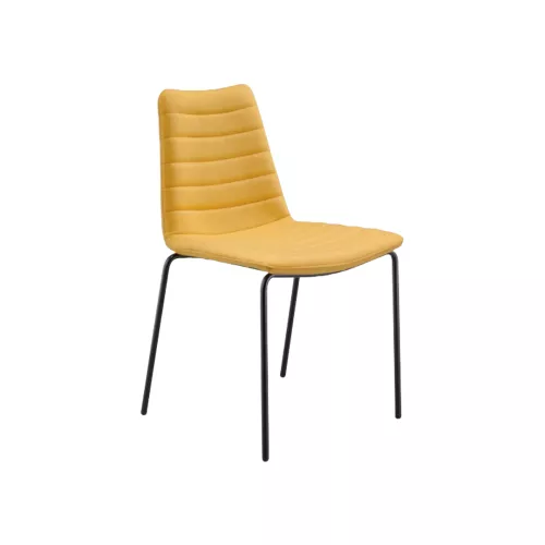 The Cover S M_M TS upholstered chair merges refinement and elegance with functional design. Its four-leg metal base, available in lacquered or chrome finish, supports a comfortable upholstered shell. Fully stackable up to 4 pieces, it offers versatility and is available in a wide range of professional fabrics or faux leather.