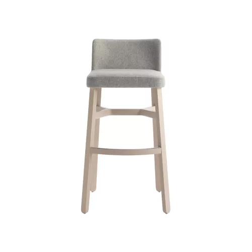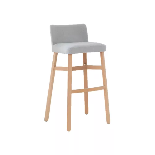 Croissant 577 is a refined wooden barstool designed for horeca environments. Built with a durable beech wood frame, it can be customized in a range of stain or RAL colors. The seat and backrest are upholstered in high-performance fabrics or faux leather, making it ideal for busy bar settings. Its adaptable style suits both modern and classic interiors.