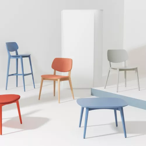 Doll 552 is a stylish chair designed for horeca spaces, featuring a solid beech wood frame with upholstered seat and backrest. The upholstery is available in a wide range of professional fabrics or faux leather, all suitable for intense use. With finishes in stained beech or RAL colors, it adapts easily to a variety of interior design concepts.