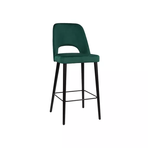 The Emanuela Gap 1 BK H80 is a stylish upholstered barstool featuring a solid beech wood frame. Its seat and cutout backrest are padded with high-density foam to ensure durability and comfort during intense use. Available in a wide selection of professional fabrics or faux leather, this versatile barstool suits any interior design or horeca environment.