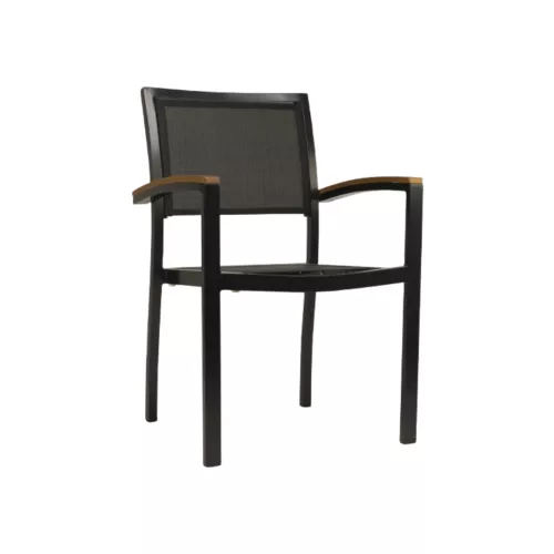 The George Black / Black Textilene chair is the perfect blend of durability and style, designed specifically for terrace restaurants, cafes, and bistros. With a robust aluminium frame measuring 22221.8mm, it’s powder-coated for added durability and UV resistance, making it an excellent choice for outdoor settings. The Textilene fabric offers high comfort, is breathable, and dries quickly, ensuring maximum guest satisfaction. The chair also features armrests for added relaxation and convenience. Designed for stackability, 24 chairs can be stacked per unit—ideal for saving space during off-peak times. Whether you're creating a modern outdoor dining area or upgrading an existing space, the George Silver / Black Textilene chair combines functionality, comfort, and timeless design.