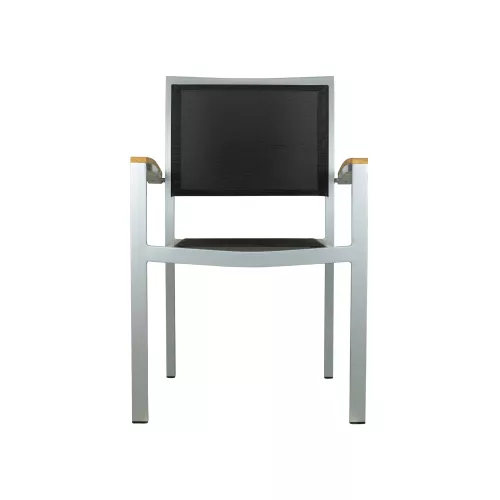 The George Silver / Black Textilene chair is the perfect blend of durability and style, designed specifically for terrace restaurants, cafes, and bistros. With a robust aluminium frame measuring 22221.8mm, it’s powder-coated for added durability and UV resistance, making it an excellent choice for outdoor settings. The Textilene fabric offers high comfort, is breathable, and dries quickly, ensuring maximum guest satisfaction. The chair also features armrests for added relaxation and convenience. Designed for stackability, 24 chairs can be stacked per unit—ideal for saving space during off-peak times. Whether you're creating a modern outdoor dining area or upgrading an existing space, the George Silver / Black Textilene chair combines functionality, comfort, and timeless design.