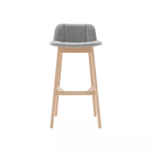 Hippy 639 is a stylish barstool with a sturdy beech wood frame and a fully upholstered seat and backrest, offering both comfort and elegance. The frame can be finished in various wood stain colors, while the upholstery can be customized using a wide selection of professional fabrics, making it a versatile choice for any modern hospitality space.