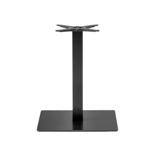Table with a square sand-blasted cast-iron base, paired with a powder-coated steel or stainless steel column and a matching cover base.