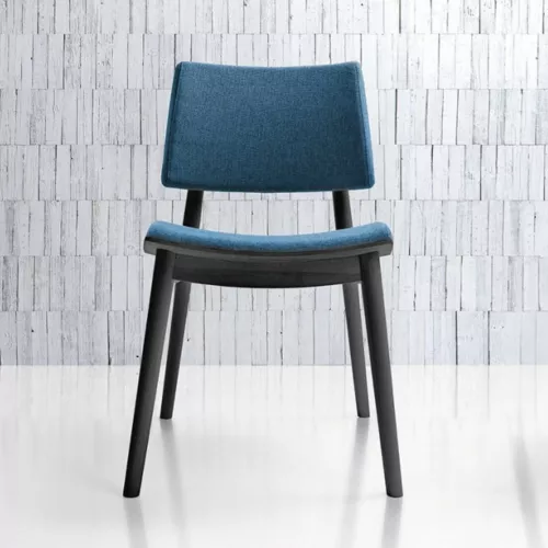 The Japan S chair draws inspiration from traditional woodcraft, combining curved plywood and solid beech turned by hand. With a sturdy beech wood frame and high-density foam, it ensures durability under intensive use. The seat and back are upholstered in fabric, eco-leather, or COM. Wood stains available. Ideal for restaurants, hotels, or cafés.