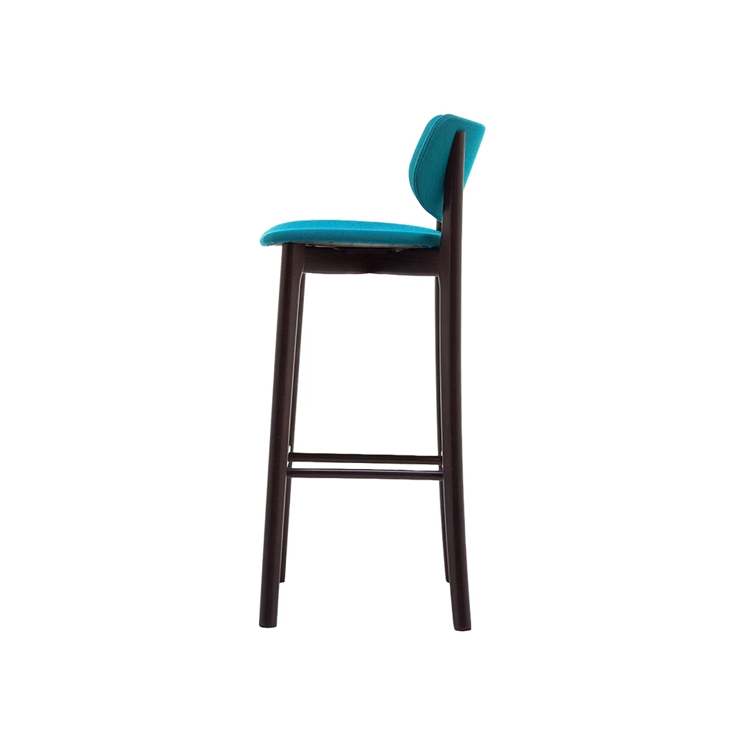 The Javiro BK UPH wooden barstool combines simplicity, character, and comfort. Its solid beech wood frame and aluminum-protected footrest ensure durability, while the upholstered seat, available in a wide range of fabrics or faux leather, adds elegance. With clean, essential lines, it adapts seamlessly to any contemporary or classic horeca environment.