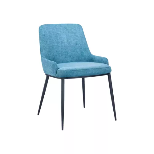 The contemporary metal chair JIM-002C is the latest addition to our metal chairs collection. The seat and backrest feature a multilayer wooden core, padded and upholstered in your choice of fabric, imitation leather, or velvet, available in several colors. As beautiful as it is comfortable, this modern chair makes a bold statement with its sleek design. The clean lines and cozy seat are just a few of the standout features. The elegant blue upholstery and refined silhouette make it a perfect fit for restaurants, cafés, and other hospitality interiors. Designed with durability in mind, the JIM-002C has a solid, long-lasting structure that withstands intensive use over time.