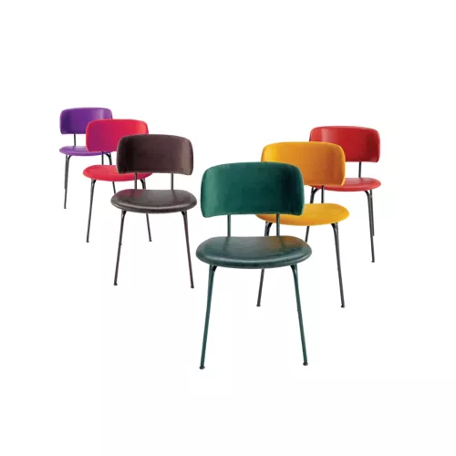 July S is a stylish chair featuring a durable metal frame and a generously upholstered seat and backrest. The elegantly curved back offers superior comfort, while the frame can be powder-coated in any RAL color. With a wide range of professional fabrics and faux leather available, July S easily adapts to the look and feel of any hospitality environment.