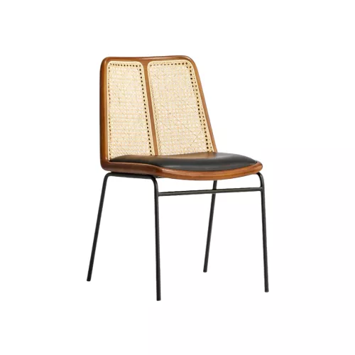Oregon is a stylish metal chair featuring a sturdy steel frame and an upholstered seat designed for comfort. Its distinctive cane backrest adds a natural touch, while the upholstery is available in a wide range of professional fabrics and faux leather options. This combination of materials makes Oregon a versatile and elegant choice for any modern HoReCa environment.