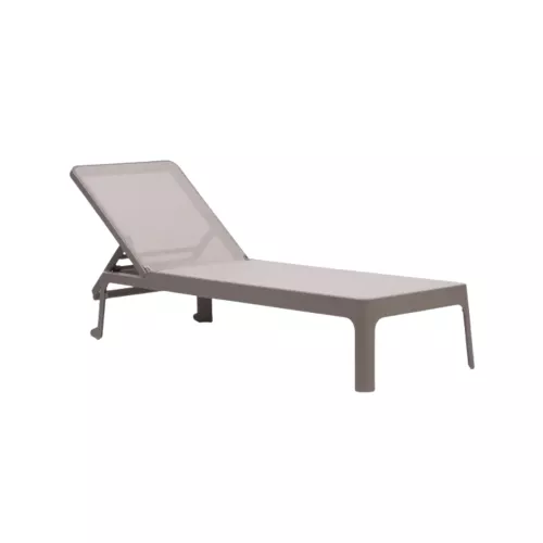 Stackable sunlounger without armrests, designed for professional outdoor use. The frame is made of fiberglass-reinforced polypropylene with UV additives, featuring a uniform colour and matt finish. The breathable synthetic fabric cover is replaceable, allowing easy maintenance and long-term use. Manufactured from recyclable resin, this sunlounger is suitable for terraces, pool areas, and hospitality environments.