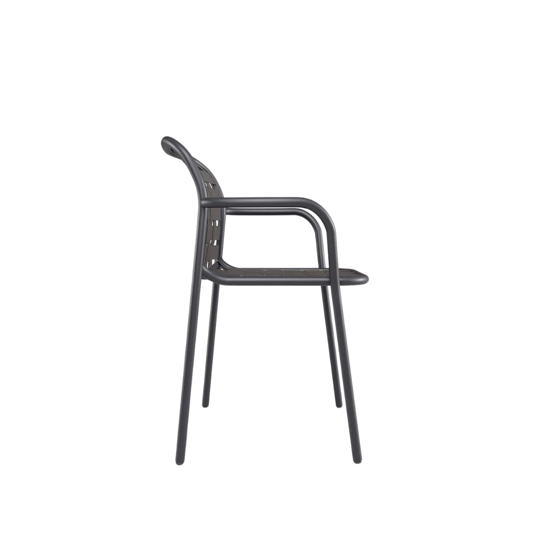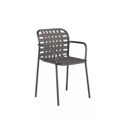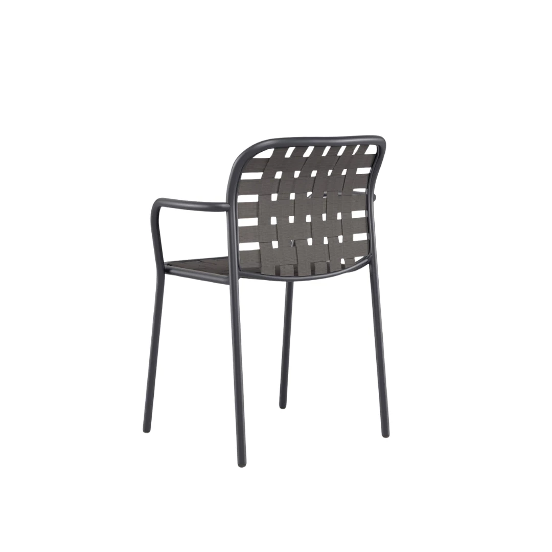 This outdoor collection combines innovative design with refined craftsmanship. Woven elastic straps are uniquely integrated into a sophisticated aluminium frame, resulting in a piece that offers both aesthetic appeal and exceptional comfort. Its eclectic style makes it a standout choice for any outdoor setting, from terraces to lounges.
