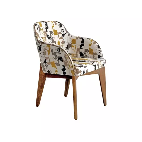 Romina Wood A is a comfortable chair with armrests, designed with a sturdy beech wood frame and upholstered for added comfort. The upholstery is available in a wide selection of professional fabrics or faux leather, perfect for intensive use. An ideal choice for horeca spaces and a variety of interior design settings.