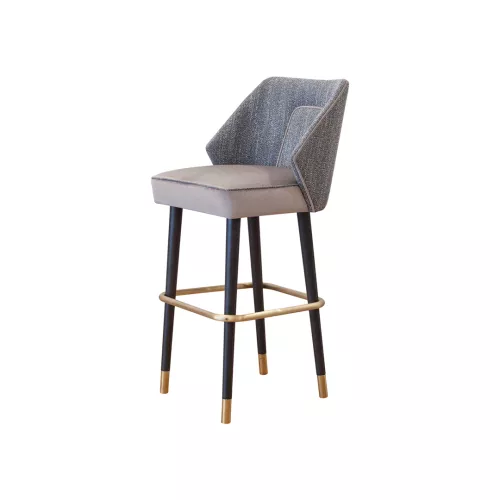 Temple BK is a modern barstool with a solid beech wood frame and a polished brass metal footrest. Featuring a comfortable upholstered seat and back, it is padded with high-resolution foam for long-term durability. With numerous finish and upholstery options, it is an ideal choice for stylish horeca locations and upscale interiors.