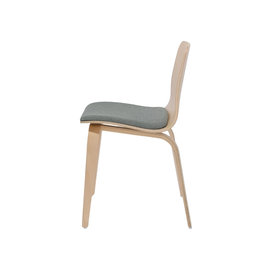The Tommy FS S wooden chair combines contemporary elegance with advanced wood-bending craftsmanship. Its upholstered seat and wooden backrest feature subtle changes in plywood thickness, highlighting thin edges while ensuring strength. Smooth, organic lines create a modern, inviting form. Available in professional fabrics or faux leather and multiple beech wood stains, it’s perfect for horeca settings.