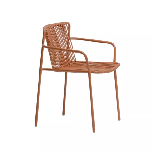 Tribeca 3665 is a stackable outdoor chair with armrests, created for horeca settings. Built with a sturdy Ø20 mm powder-coated steel tube frame, it offers excellent resistance to outdoor elements. The seat and backrest are crafted from woven extruded PVC with a nylon core, providing durability and comfort. Ideal for terraces, patios, or any outdoor hospitality area.