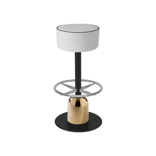Typha is a modern and durable iron stool, designed with a round cast iron base covered for a sleek finish, a chrome-plated central tube, and an Aluminium footrest for added comfort. It is available in both low and high versions, with either a fixed or swivel seat. The seat is upholstered for comfort, making it ideal for bars, cafes, restaurants, and other commercial spaces. With a height of 80 cm and a stable 45 cm base, Typha offers a perfect balance between elegance and functionality, suited for intensive daily use.